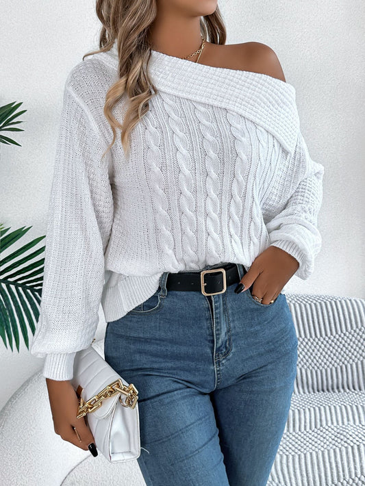 Asymmetrischer Damen-Strickpullover mit Zopfmuster und weiten Ärmeln von berg-feldt