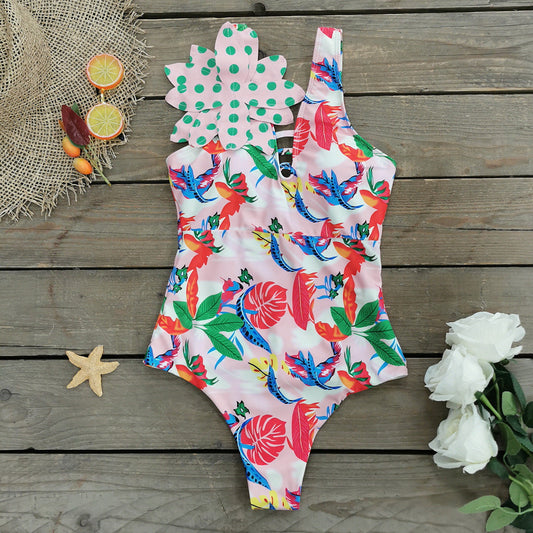 Badeanzug für Damen mit asymmetrischem Träger und einzigartigem Blumenmuster von berg-feldt