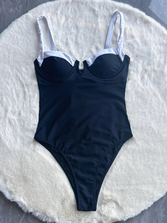 Badeanzug für Damen mit goldenen Details und hohem Beinausschnitt von berg-feldt