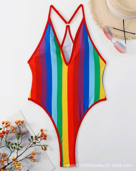Badeanzug für Damen mit V-Ausschnitt und modischem Streifenmuster von berg-feldt