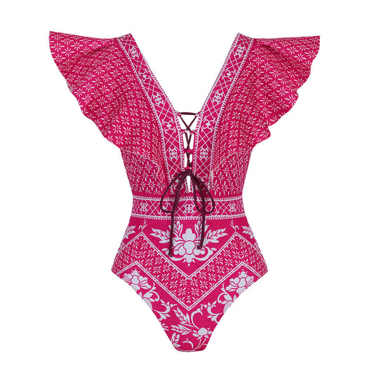 Badeanzug für Damen mit weiten Rüschen und tiefem V-Ausschnitt von berg-feldt