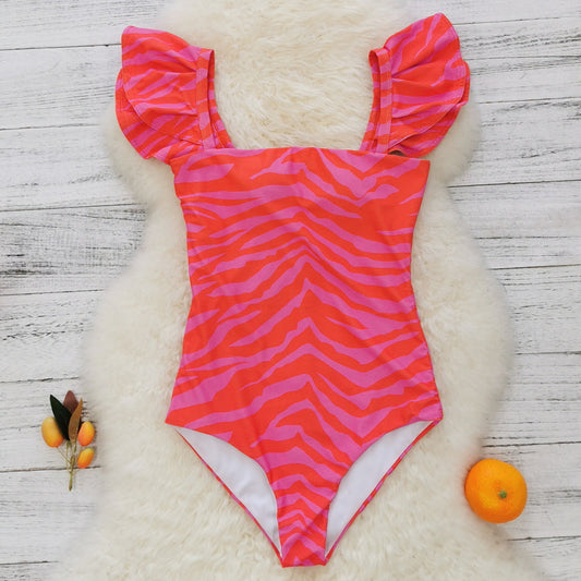 Badeanzug für Damen mit weiten Ärmeln und auffälligem Zebramuster von berg-feldt