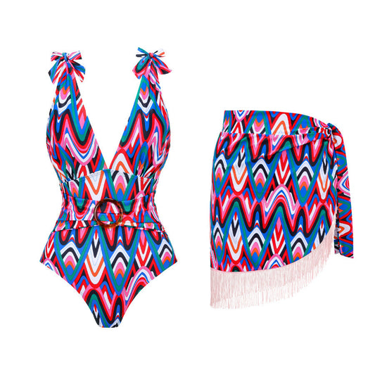 Badeanzug für Damen, einseitig ausgeschnitten, mit Blumenmuster und modischem Gürtel von berg-feldt