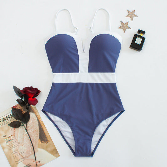 Badeanzug für Damen, Einteiler mit V-Ausschnitt und modischem Kontrastbund von berg-feldt