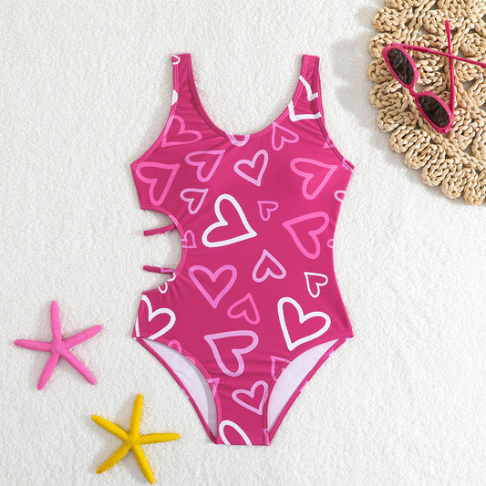 Badeanzug für Damen, einteilig, Herzmuster, seitliche Ausschnitte berg-feldt