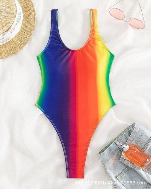Badeanzug für Damen, einteilig, mit farbenfrohem Farbverlauf Berg-Feld