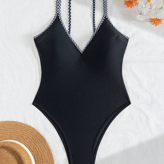 Badeanzug für Damen, einteilig, mit V-Ausschnitt und angesagten Trägern von berg-feldt
