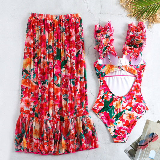 Badeanzug-Set für Damen mit Blumenrüschen und fließendem Rock von berg-feldt