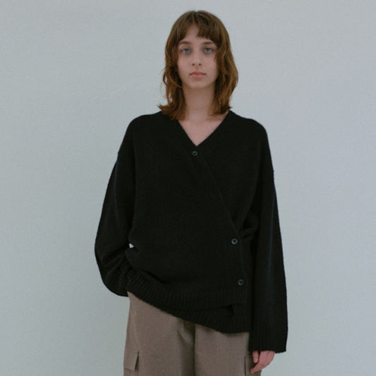 Bequemer Damen-Strickpullover mit Wickeloptik und edlen Details von berg-feldt