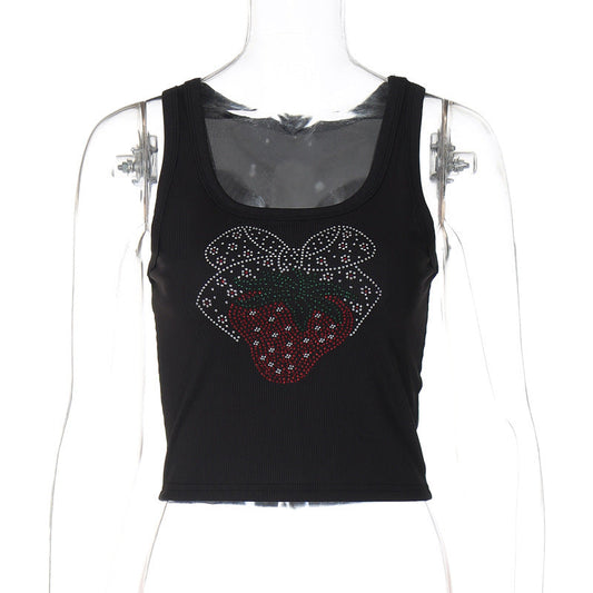 Ärmelloses Damen-Crop-Top mit glitzerndem Erdbeer-Print von berg-feldt