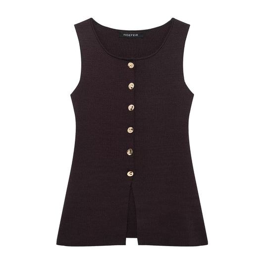 Ärmelloses Damen-Patchwork-Oberteil mit dekorativem Knopfdetail