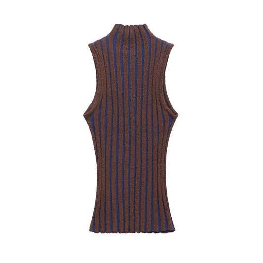 Ärmelloses Damen-Rippstricktop mit senkrechten Streifen von berg-feldt