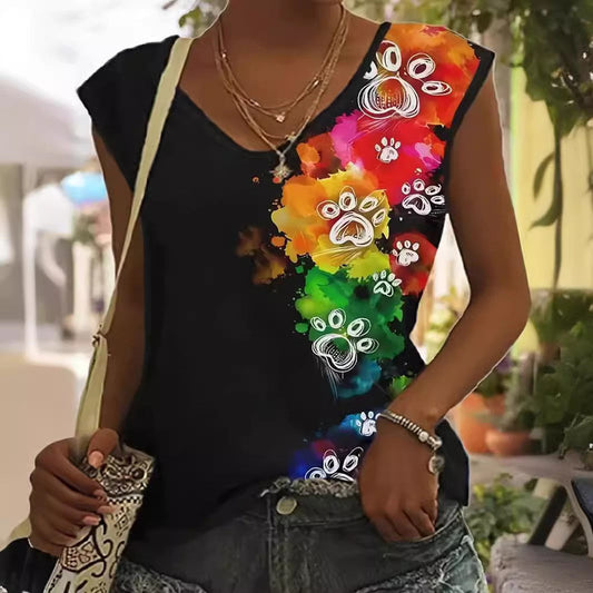 Ärmelloses Damen-T-Shirt mit buntem Druck und Knöpfen von berg-feldt