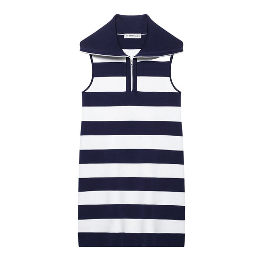 Ärmelloses Damen-Strickkleid mit Reißverschluss-Kragen in Streifenoptik von berg-feldt