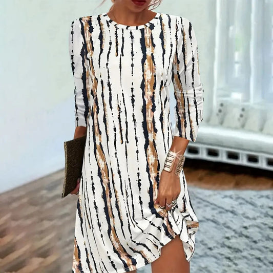 Artistic Print A-Line Midi Dress with Short Sleeves by berg-feldt for Women
