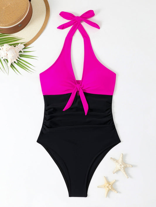 Berg-Feldt Badeanzug für Damen: Einteiler mit modischem Knoten und hohem Rückenausschnitt