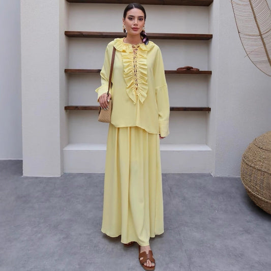 Wickel-Oberteil und Langarm-Set für Damen mit Rüschen von berg-feldt