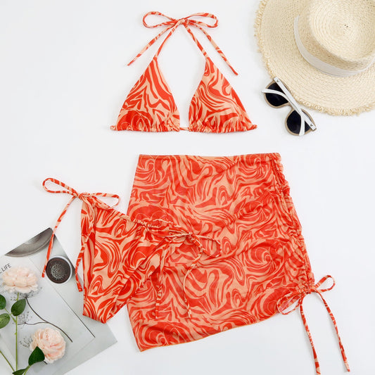 Wickelrock-Bikini mit Dreieck-Oberteilen und modischem Muster von berg-feldt