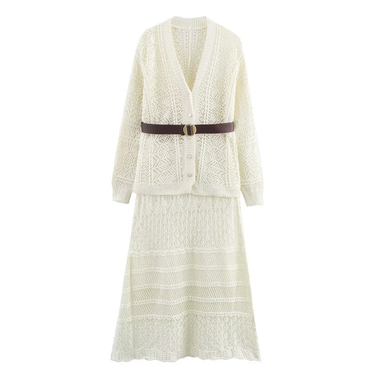 Women's Cable Knit Cardigan and Maxi Dress Set by berg-feldt