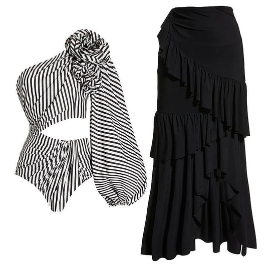 Women's One-Shoulder Cut-Out Crop Top and Mini Skirt Set by berg-feldt