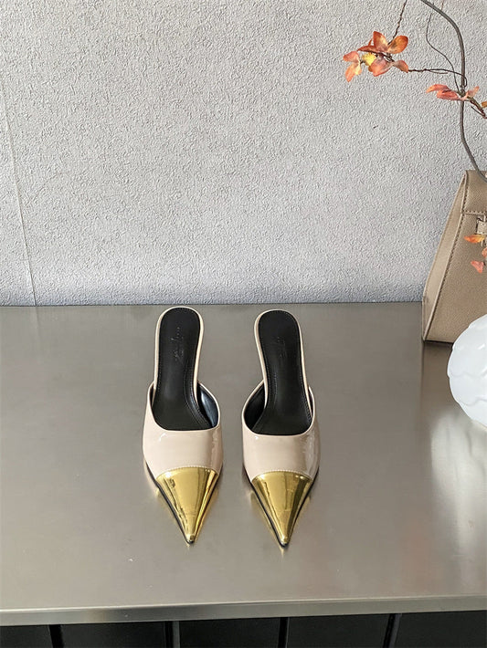 Women's Pointed-Toe Metallic Heel Strap Mules berg-feldt