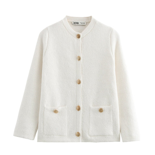 Women's Textured Knit Jacket with Floral Details berg-feldt