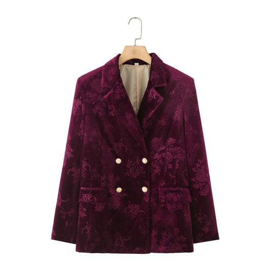 Women's Velvet Blazer with Reverse Collar and Flowers by berg-feldt