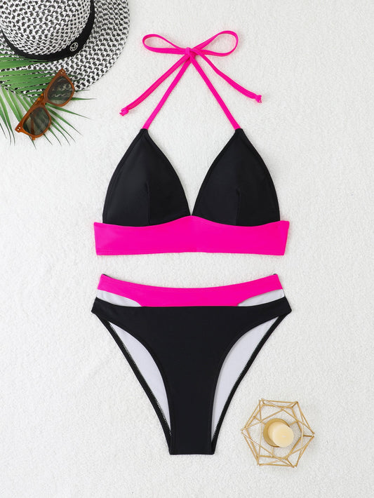 Womens Triangle Bikini with Adjustable String and Trendy Colorblock Design berg-feldt