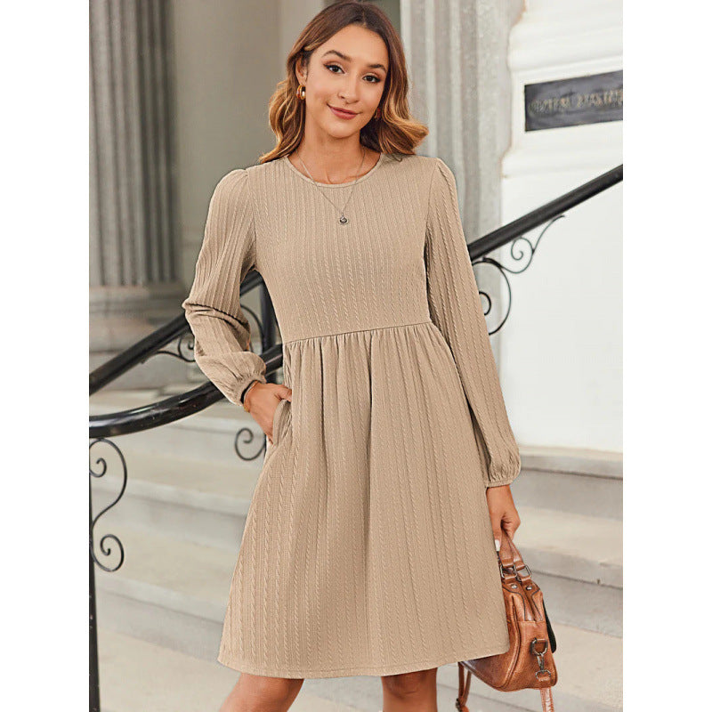 Stylisches Texturiertes Langärmliges A-Linien Kleid