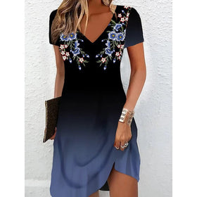 Dieses beeindruckende A-Linien Kleid besticht durch wundervolle florale Stickereien und einen harmonischen Farbverlauf am Saum. Es schmeichelt jeder Figur und eignet sich für jede Gelegenheit.