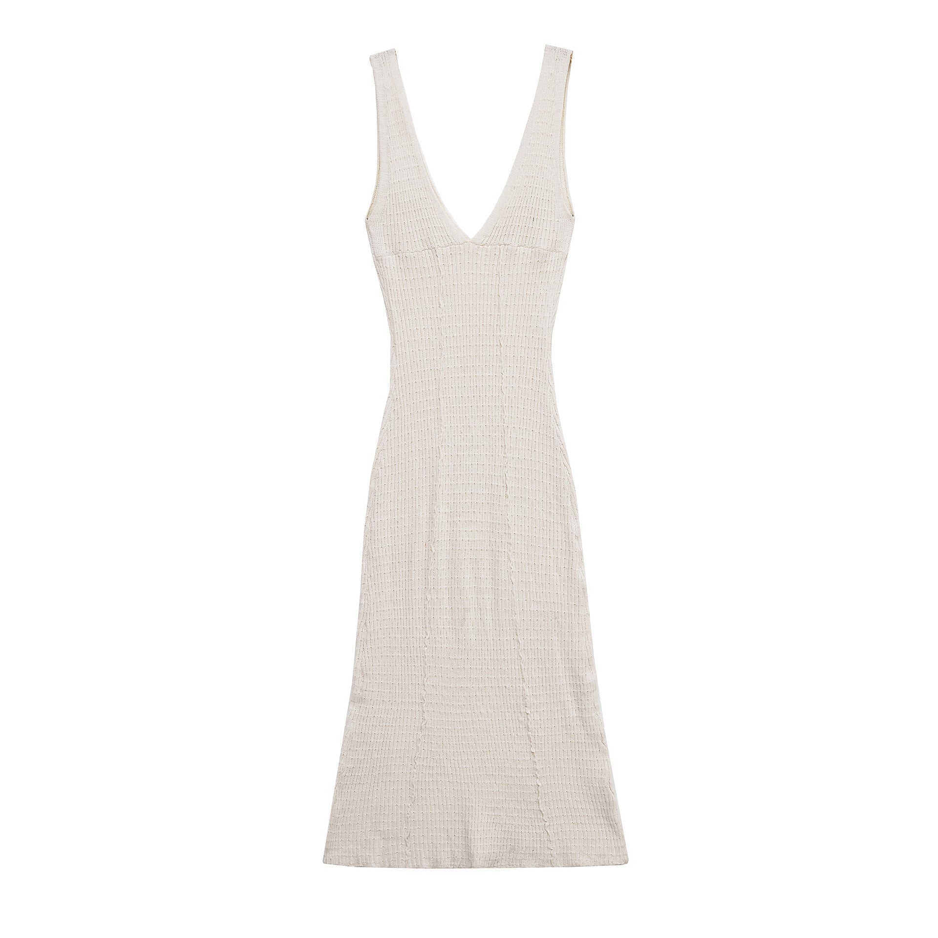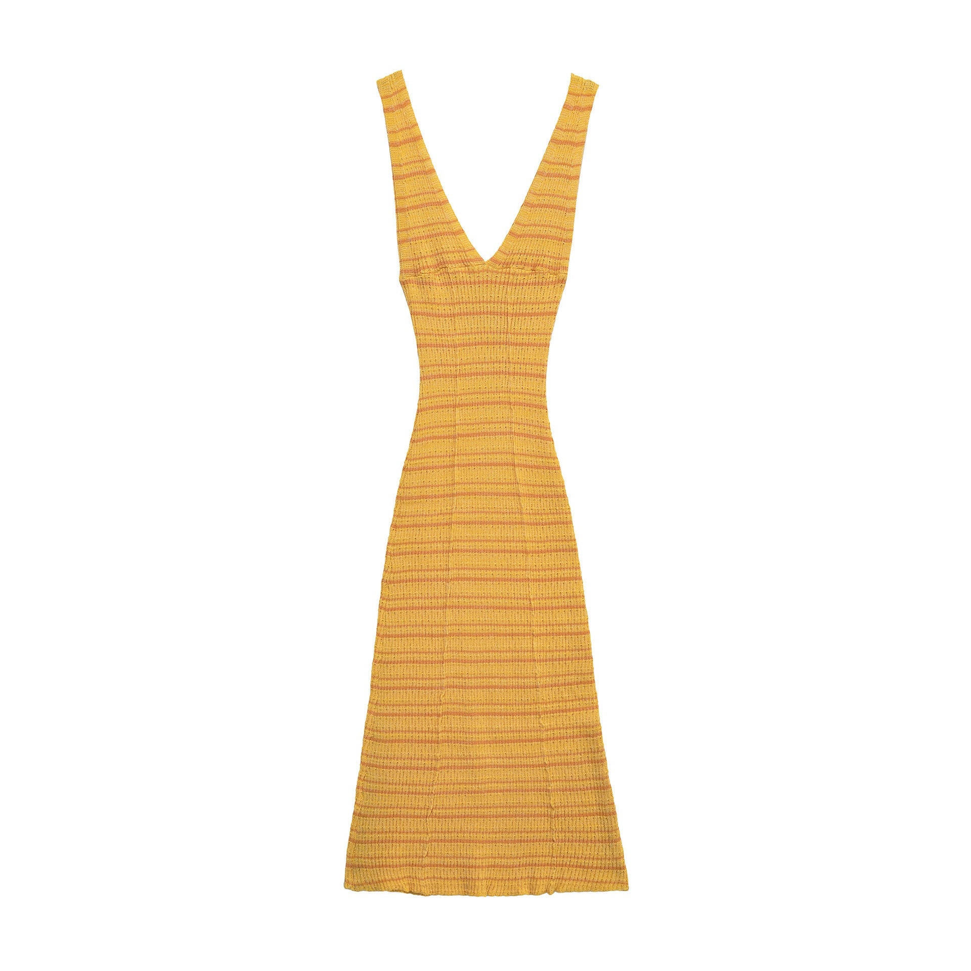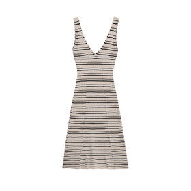 Das stilvolle gestreifte gestrickte A-Linienkleid – Ihr perfekter Sommerbegleiter. Komfortabel und elegant, ideal für diverse Anlässe.