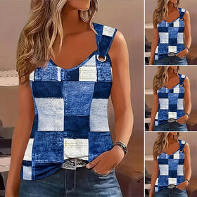 Stilvolles, ärmelloses Oberteil mit einzigartigem Patchwork-Design, perfekt für warme Tage. Komfort und modischer Look vereint.