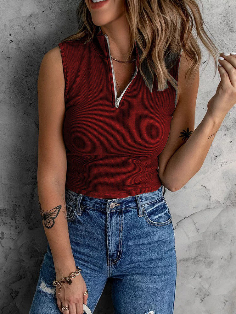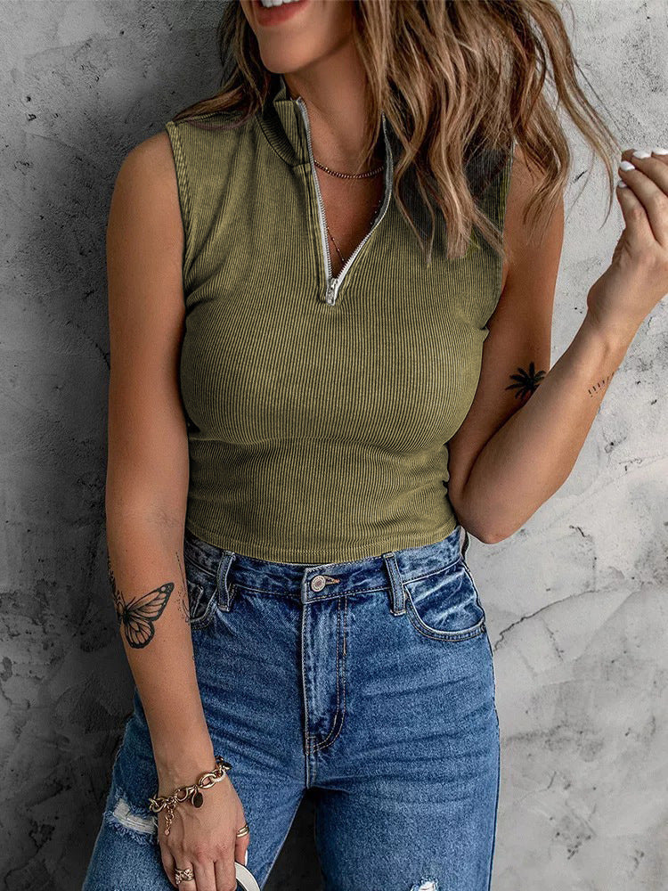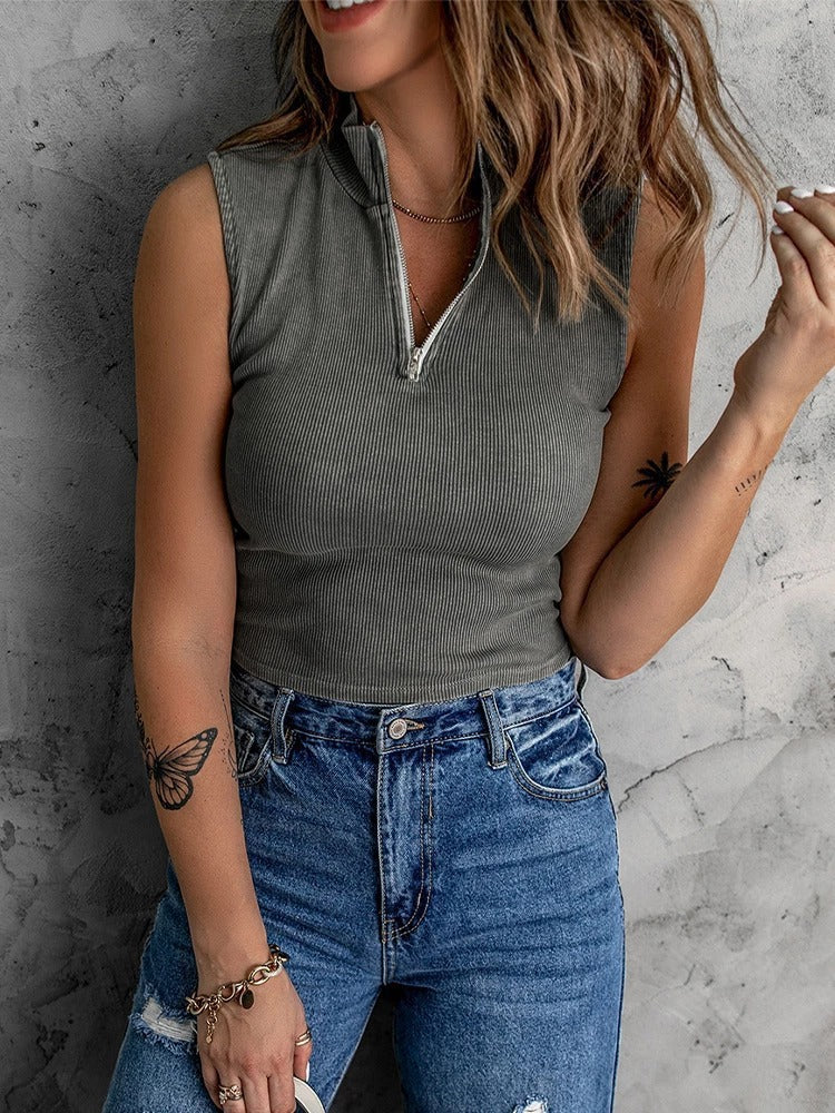 Modisches Ärmelloses Top mit Reißverschluss
