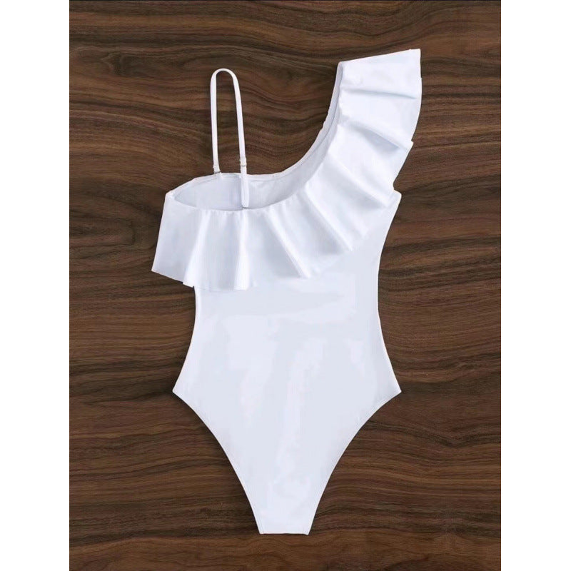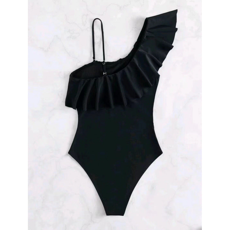 Asymmetrischer Badeanzug für Damen mit Rüschen und feinen Trägern von berg-feldt