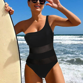 - 1-Schulter-Design: Modernes, asymmetrisches Oberteil betont die Schultern. - Transparente Einsätze: Feine, durchsichtige Details für zusätzlichen Chic. - Figurschmeichelnder Schnitt: Betont die Kurven für eine schöne Silhouette. - Vielseitig einsetzbar: Ideal für Strand, Schwimmbad und Wasseraktivitäten. - Hoher Komfort: Ausgezeichnete Bewegungsfreiheit und angenehmer Tragekomfort.Perfekt für modebewusste Frauen, die Stil und Funktionalität suchen. Kombinieren Sie ihn mit Strandtuch und Sonnenbrille!