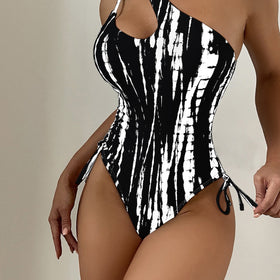 Verbessern Sie Ihren Strandlook mit unserem asymmetrischen Damen-Badeanzug mit vorderem Bindeband. Aus erstklassigen Materialien gefertigt, bietet er Komfort und stilvolle Eleganz. Der auffällige asymmetrische Schnitt und das schmeichelnde Bindeband verleihen Ihrer Badebekleidungs-Kollektion Raffinesse.