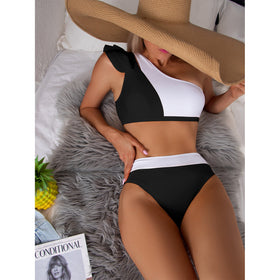 Unser auffälliges asymmetrisches Bikini-Set mit hoher Taille, designt für stilbewusste und komfortorientierte Frauen. Ideal zum Relaxen am Pool oder am Strand.