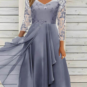Entdecken Sie unser atemberaubendes Damen Abendkleid mit floralen Spitzenärmeln und asymmetrischem Schnitt. Eleganz und Komfort vereint, perfekt für besondere Anlässe.