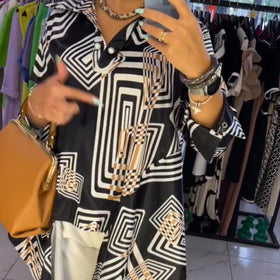 Das berg-feldt Damen asymmetrische Hemd vereint Stil und Eleganz mit einem dekorativen geometrischen Muster. Perfekt für modische Anlässe und den Alltag.