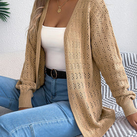 Diese Damen Strickjacke vereint Stil und Komfort. Elegant mit Lochmuster, perfekt für Frühling und Herbst.