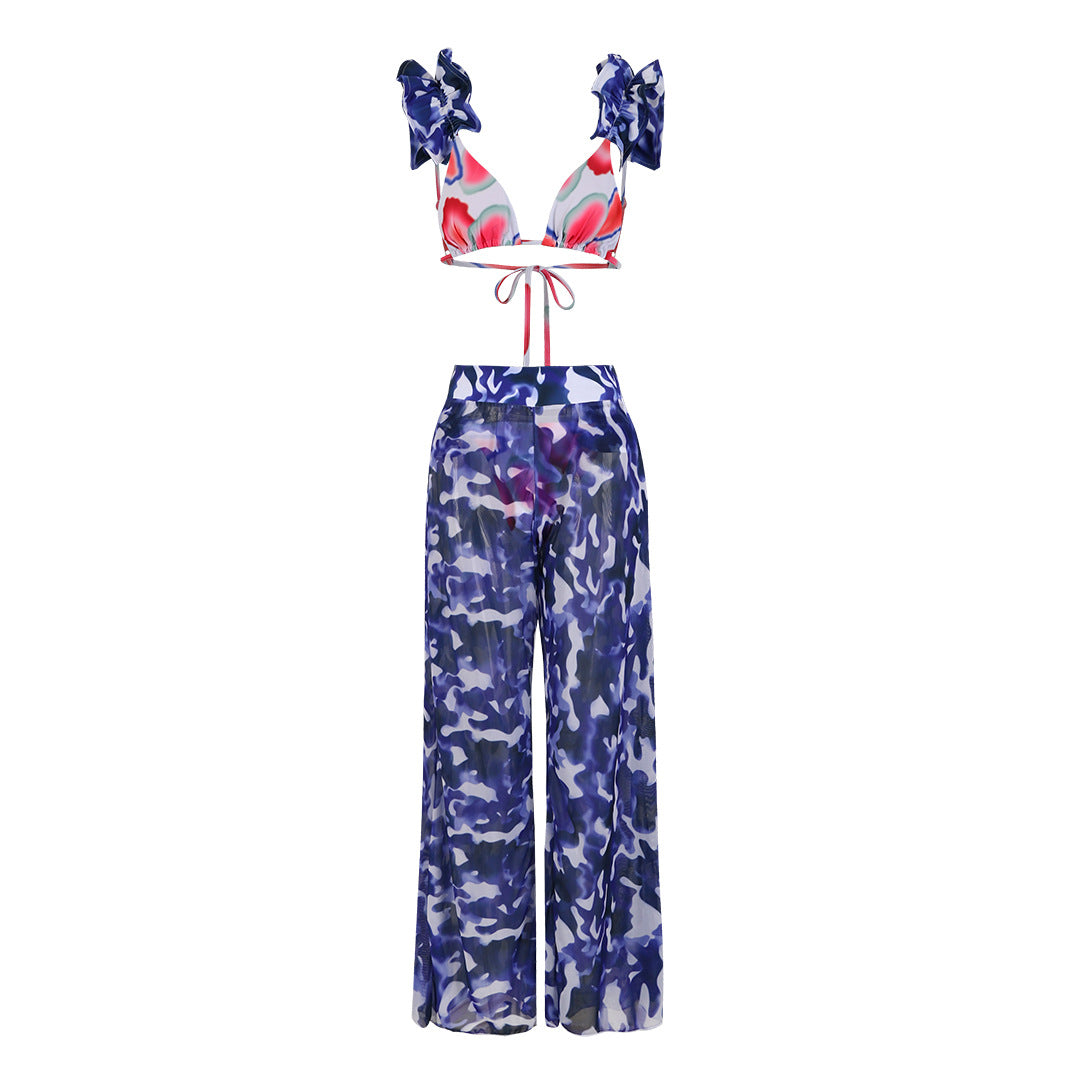 Elegantes Damen Bikiniset von berg-feldt mit aufregendem Rüschendesign und weit geschnittener Hose. Ideal für Strand und Pool.