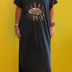 Entdecken Sie das stilvolle Damen Freizeitkleid mit Paillettenmotiv