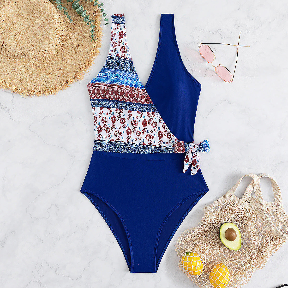Badeanzug für Damen, einseitig ausgeschnitten, mit Blumenmuster und modischem Gürtel von berg-feldt