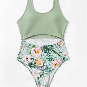 Stilvoller, modischer und funktionaler Einteiler im Crop-Top-Schnitt mit attraktivem floralen Design.