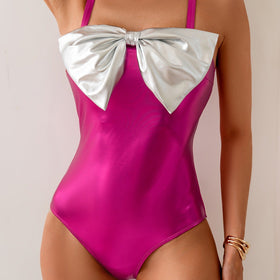 Entdecken Sie den perfekten Begleiter für sonnige Tage am Strand: unseren Damen Einteiler Badeanzug mit glänzendem Schleifendetail. Speziell für stilbewusste Frauen designt, kombiniert er Mode und Tragekomfort.