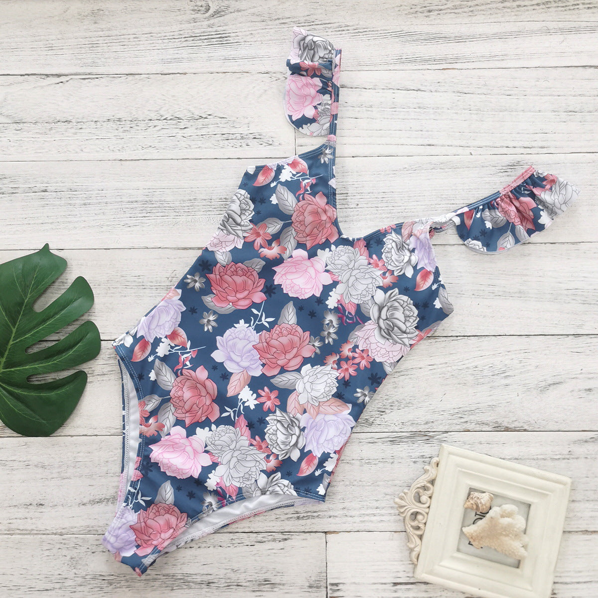 Badeanzug für Damen, klassisches Blumenmuster, voluminöse Rüschen, berg-feldt