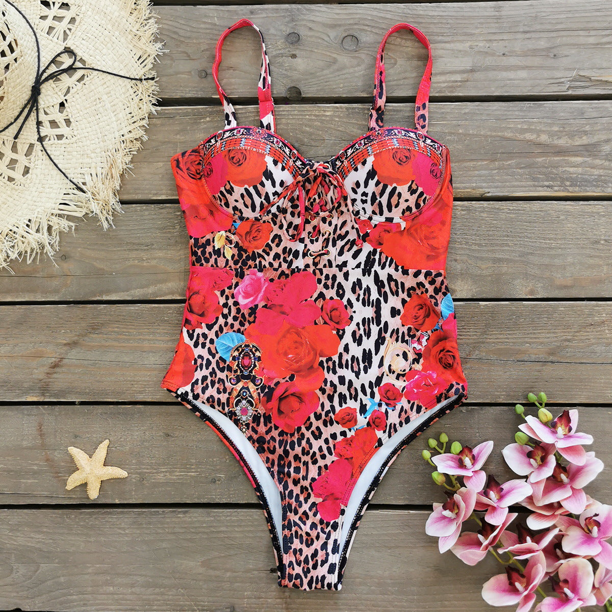 Badeanzug für Damen mit Blumen und Leopardenmuster von berg-feldt