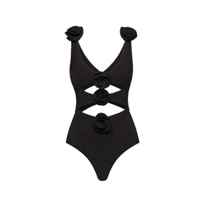 Entdecken Sie unseren eleganten Damen Einteiler Badeanzug mit floralen Rüschen-Details und Cut-Outs. Perfekt für Strand oder Pool.