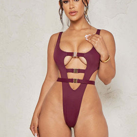 Eleganter Einteiler Badeanzug von berg-feldt mit einzigartigem Cut-out Design und goldenen Akzenten für höchsten Tragekomfort. Perfekt für Strand und Poolpartys.