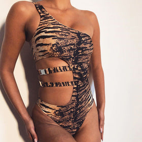 Entdecken Sie unseren Damen Cut-Out Einteiler Badeanzug: Stil und Funktionalität vereint. Asymmetrisches Design und raffinierte Cut-Outs sorgen für einen aufregenden Look. Modische Seitenträger betonen die Silhouette.